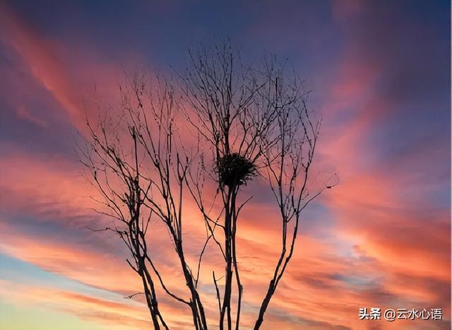 “半竿”二字,形象地表现出太阳与地面的距离,呼应首联的“碧云”,交代了时间的缓慢流逝。“一鹤”又与“危巢”形成对比,飞鸟南去、仙鹤归林,枝叶稀疏、松树茂密,展现出生生不息、繁衍不断的自然画面,让人感触不尽。